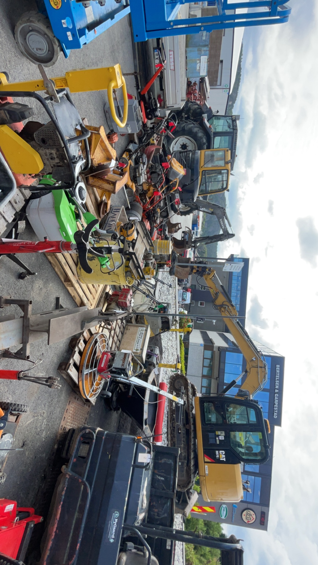 Av maskiner kan det nevnes at det auksjoneres: 3 stk gravemaskiner (4-20 tonn) og 5 stk. firhjulinger.