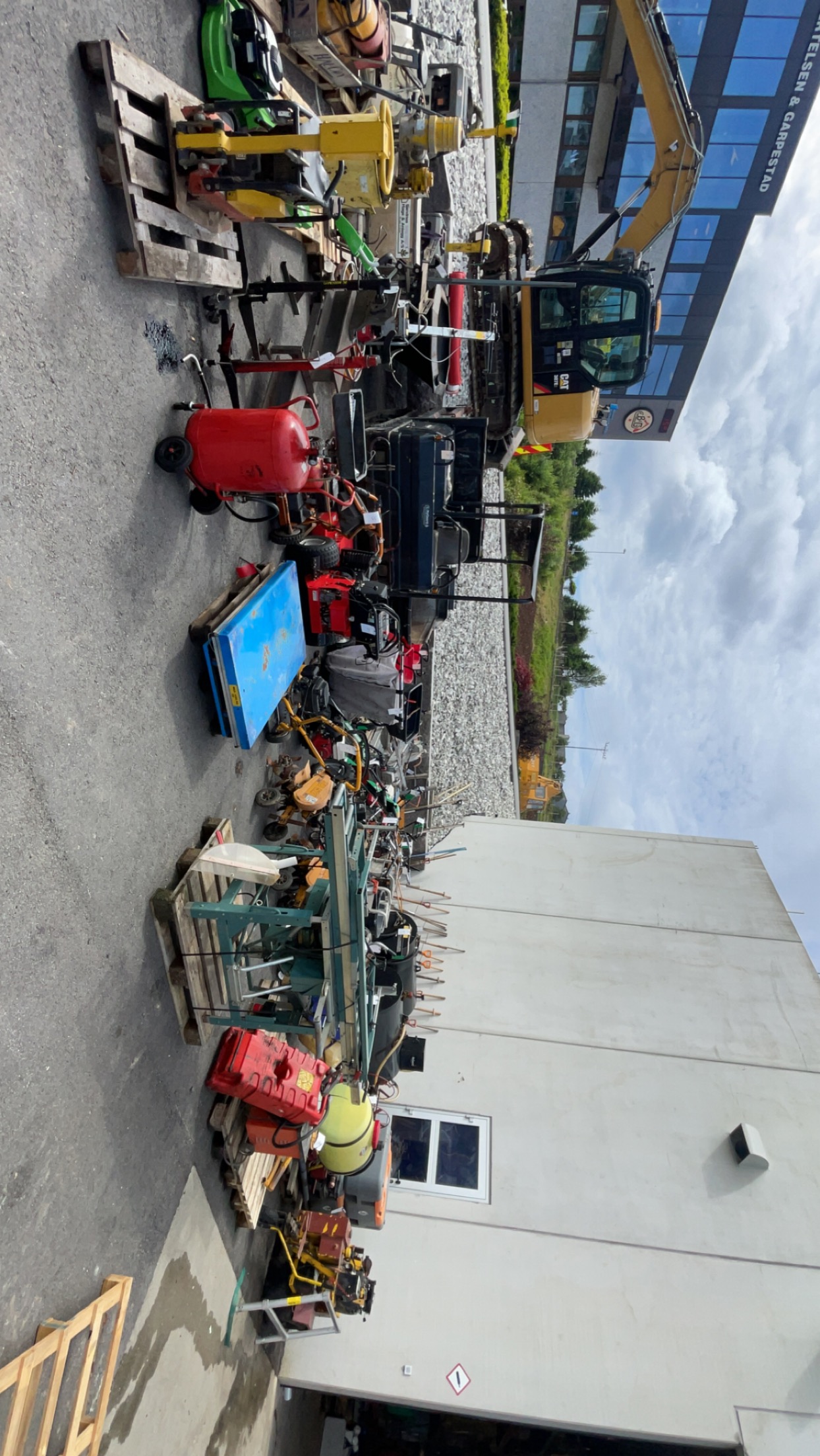 Av utstyr er det bla.: Plenklippere, jordfresere, komprimeringsutstyr, hageutstyr, hekksakser og annet elektrisk utstyr. (250-300 utrop)