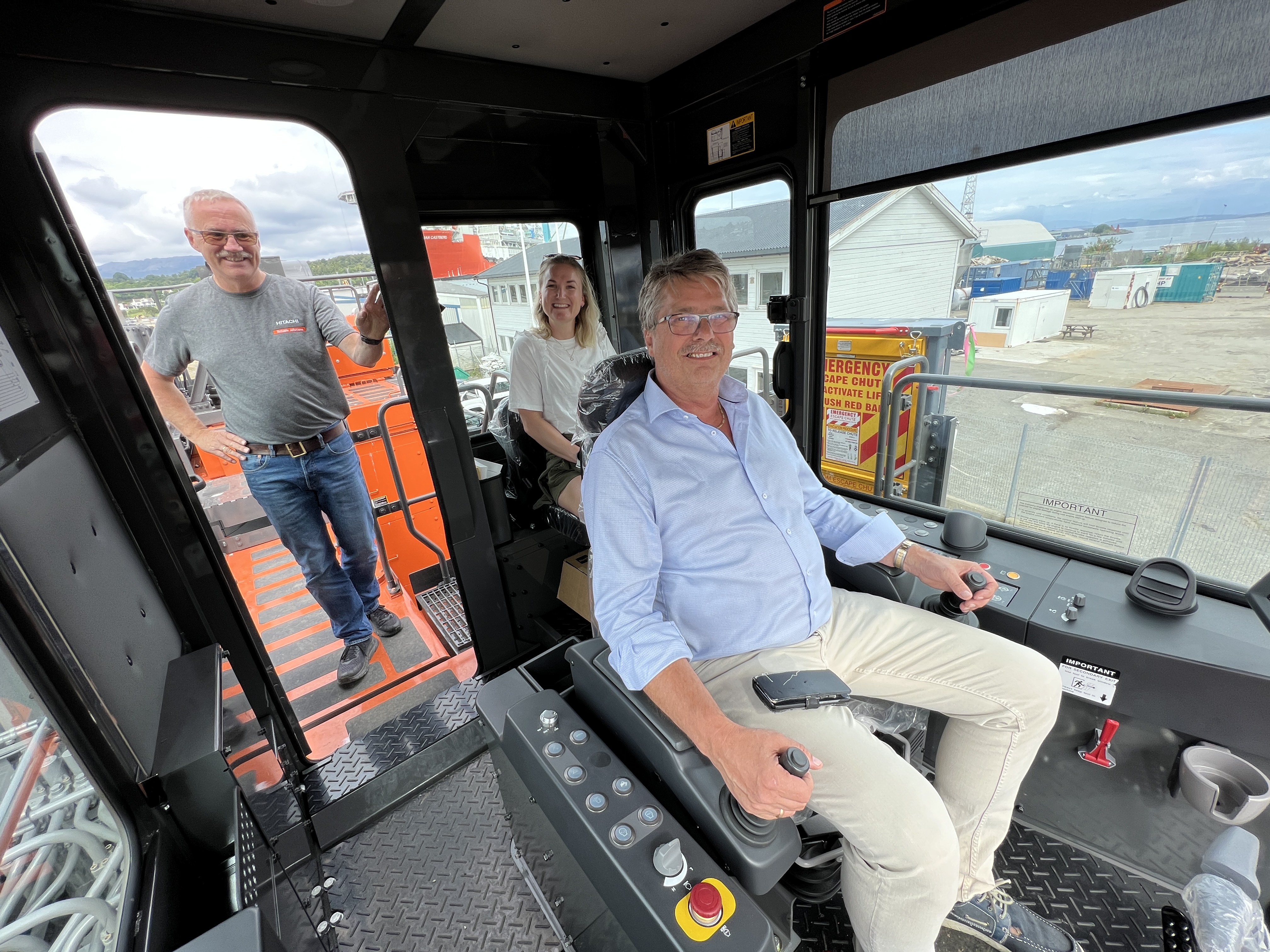 «Marte» ble altså navnet på den 200 tonns tunge Hitachi EX2000 som ble overlevert på Stord. Maskinen skal påmonteres en La Bounty 9500R saks som skal klippe opp utdaterte oljeplattformer etter oppdrag fra Aker Solutions Stord. Maskinen ble levert til kai i deler før sommeren, og er nå montert sammen av Nasta Spesialproduksjon. «Før maskinen kan tas i bruk til formålet må bommen fraktes til Larvik der den forlenges ved Nasta sin avdeling for spesialproduksjon. Deretter skal den 24 tonn tunge saksa, som er ferdig produsert i midten av september, monteres direkte på bommen. En forventer at maskinen vil være i drift på senhøsten», bekrefter maskinselger hos Nasta, Bjarne Bøe, som også hadde tatt turen for å bevitne maskindåpen. «Vi har hatt et meget godt samarbeid med Bertelsen & Garpestad AS nå i mange år, men en slik maskinoverlevering er ikke helt hverdagskost for oss i Nasta», smiler maskinselgeren. Denne dagen tar også Tom Johansen, administrerende direktør i Nasta, del i feiringen på Stord, og Tom kan også bekrefte at det er en spesiell maskin. «Dette er en av de største maskinene Nasta har levert. Dessuten er det den første modellen i den nye serie 7 av denne størrelsen som Hitachi har eksportert til Europa. Vi er selvsagt spent på hvordan maskinen vil oppfattes sammenlignet med andre maskiner som utfører tilsvarende jobber på Aker Stord i dag. Tidligere modeller av Hitachi EX2000 har fantastisk historikk og rykte, så nyvinningene fra serie-7, kombinert med kundetilpasningen fra vår dyktige spesialproduksjonsavdeling, bør være en god kvalitetssikring», fastslår Johansen.
