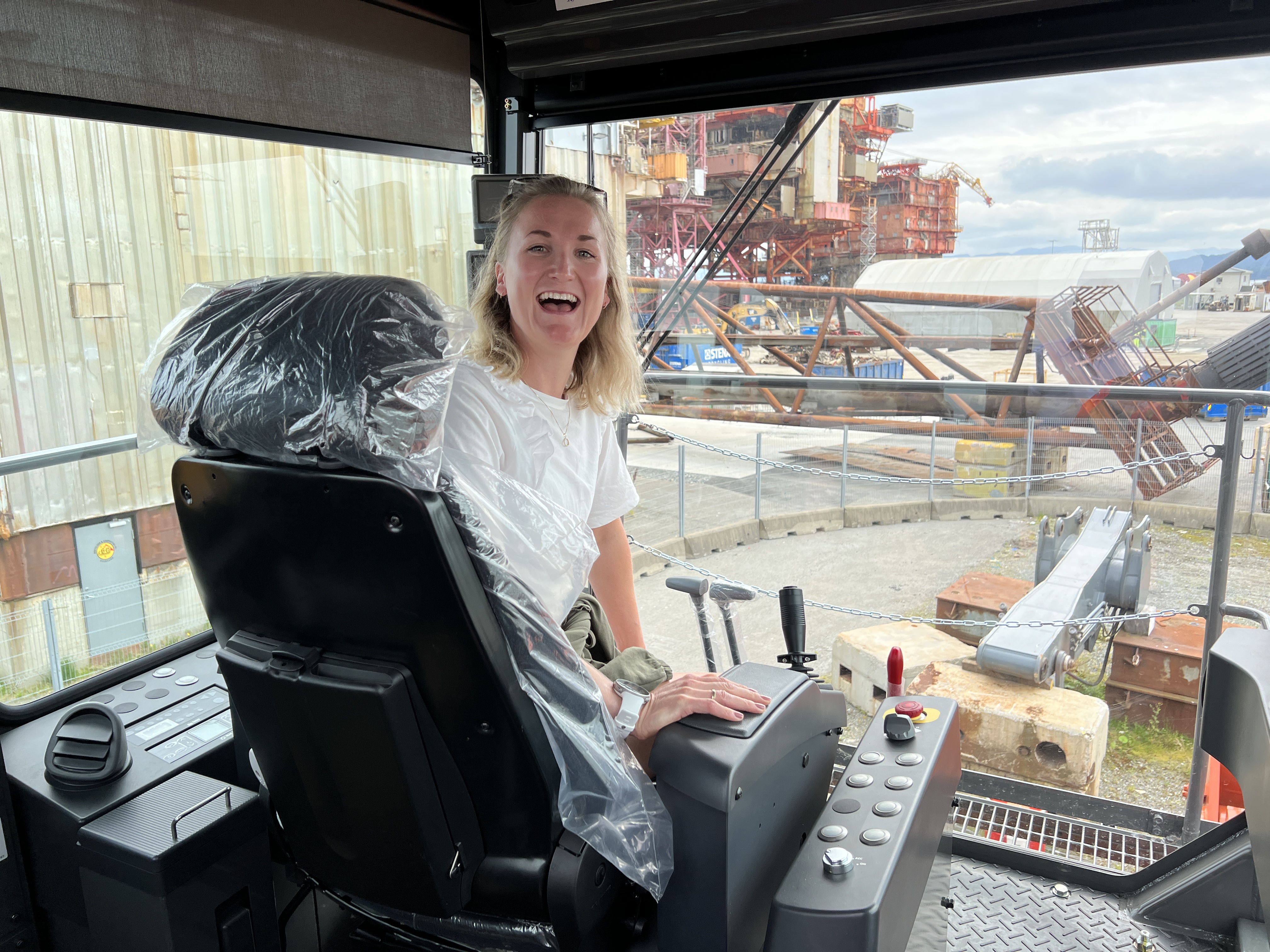 Rett før helgen, og rett før den travle konkurransesesongen, tok Marte turen til Stord for en maskindåp i stor skala. Idrettsstjernen lot seg virkelig imponere av anleggsmaskinen: «Dette er utrolig stort – bokstavelig talt», ler hun når hun får sett maskinen. «Når Øyvind fortalte om dette – så var det jo bare veldig gøy. En ære rett og slett. Og så stor maskin da gitt», smiler gulljenta etter å ha avduket og signert et megabilde av seg selv på maskinenes venstre side. Marte tok også de 22 trappene opp til det romslige førerhuset for å kjenne på spakene. Og det levnes null tvil om at dette sponsor-samarbeidet betyr mye for begge parter: «Jeg er veldig heldig som får oppleve mye mer enn skiskyting. Så er det veldig hyggelig å ha en sponsor som er så engasjert. Det er jo det som er gøy med BG – at de er med og heier, og er involvert. Det er kjempeartig. Så jeg må tilbake når maskinen er i drift – men da tør jeg nok bare å sitte i barnesetet», ler hun..