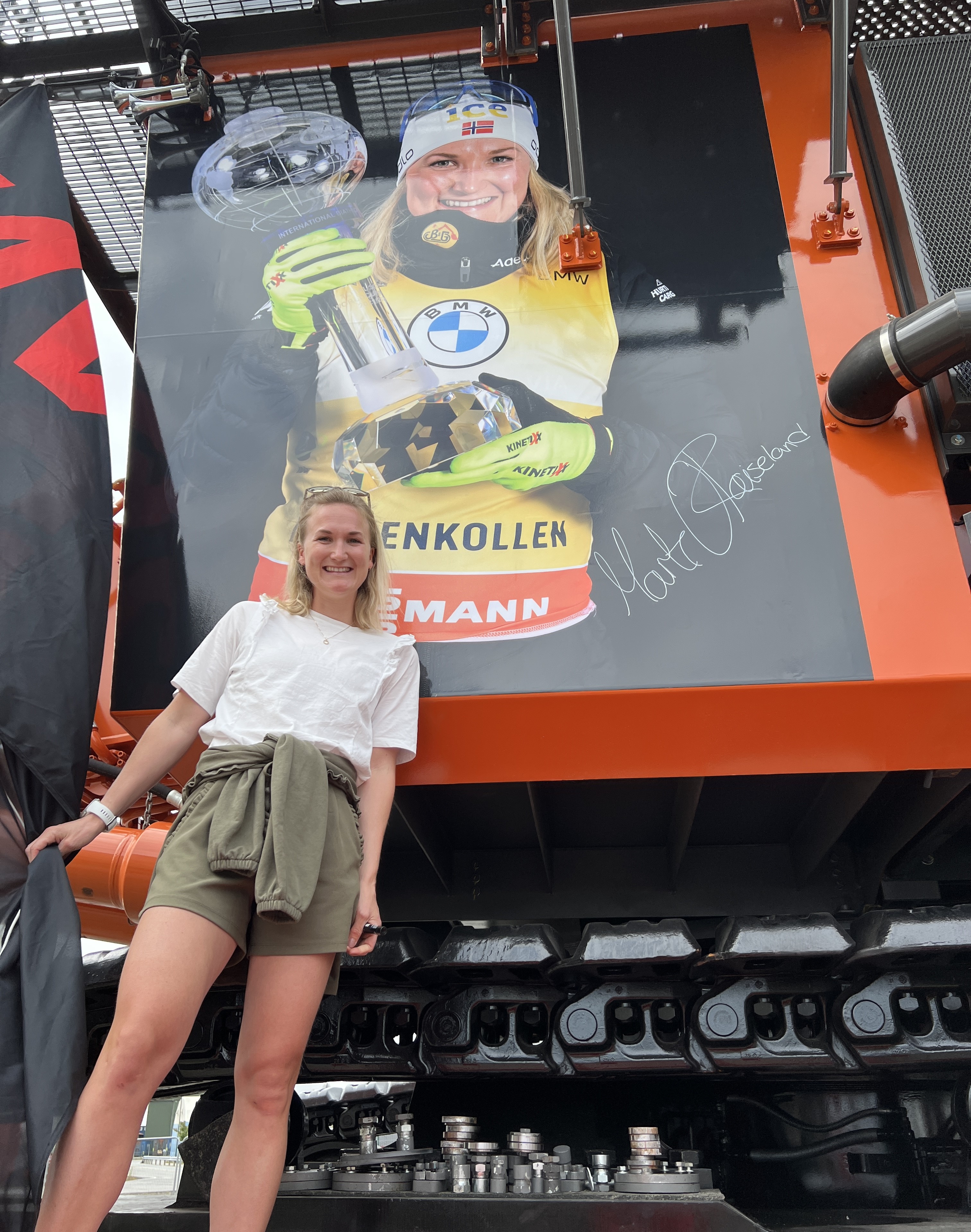 Marte Olsbu Røiseland er en norsk skiskytter som har vunnet 11 VM-gull, herav to individuelle. Hun vant verdenscupen 2021/22 og hun tok hele 3 OL-gull i Beijing i år. Og nå har skiesset også fått en gigantisk gravemaskin oppkalt etter seg. Entreprenør Bertelsen & Garpestad AS (BG) har nemlig en sponsoravtale med Røiseland – og ville gjøre noe gøy når de markerte sin siste investering.