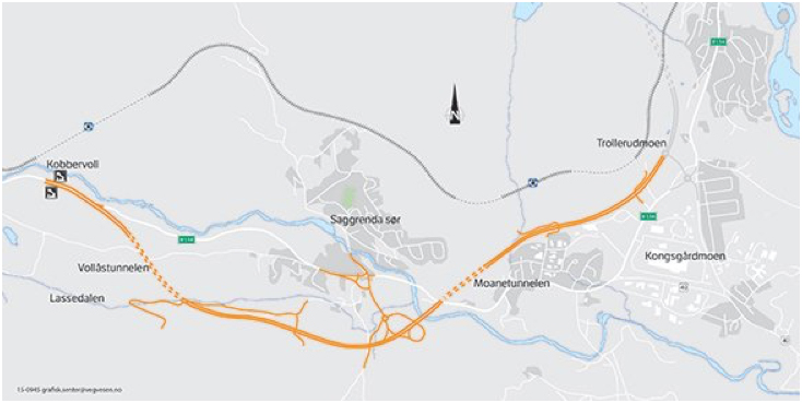 Dette er et arbeidsfellesskap mellom Metrostav NUF, Hag Anlegg AS og Bertelsen & Garpestad AS. På denne entreprisen skal det bygge to mindre ett-løps tunneler, Moanetunnelen (ca. 300 meter) og Vollåstunnelen (ca. 400 meter). I Saggrenda blir det planskilt kryss, og i tillegg bygges det fire bruer og tre underganger.