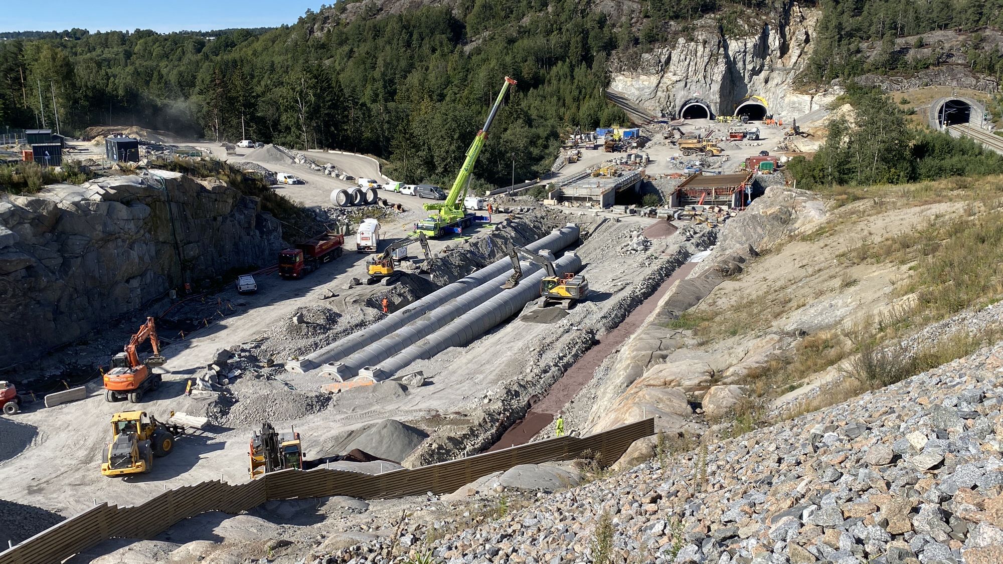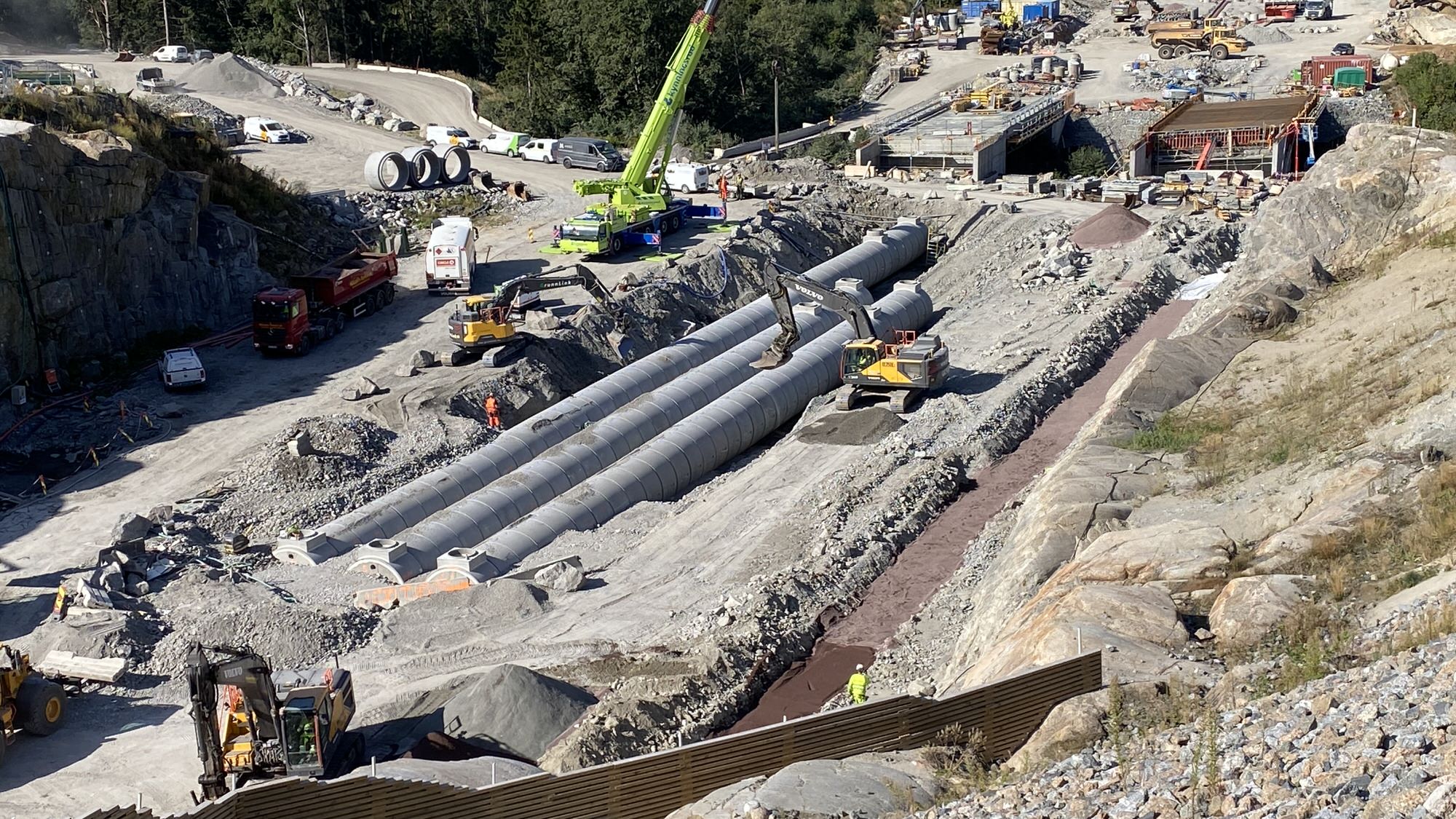 Her pågår et av landets største veiutbyggingsprosjekter. Ved Herregårdsbekken, like ved tunnelmunningene til Bjønnåstunnelen og Grenlandstunnelen, er to store magasiner for tunnelvann nå på plass.