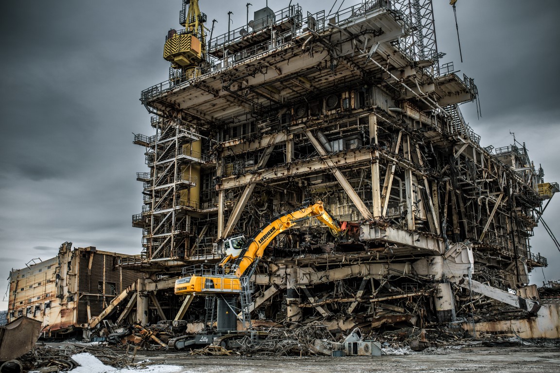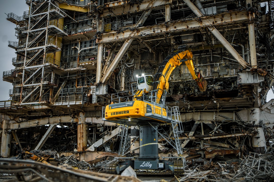 Bertelsen & Garpestad er avhengig av Liebherrs LH 110 C High Rise Industry for sikker, effektiv og bærekraftig resirkulering av Gyda-plattformen, en gammel plattform i Nordsjøen.