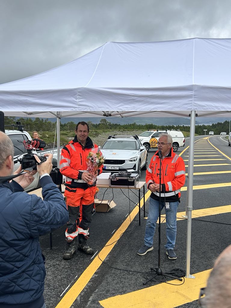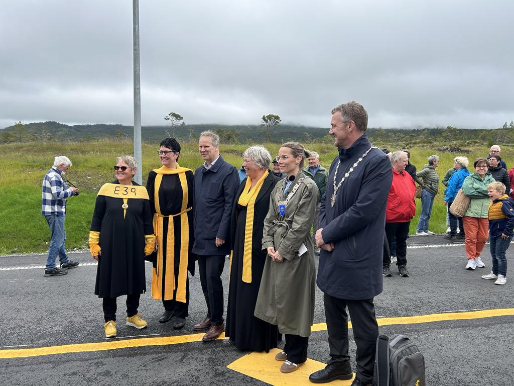 Samferdselsministeren, utbyggingsdirektør i Statens vegvesen, ordførere, entreprenører, samarbeidspartnere og lokalbefolkning var samlet for å feire åpningen av hele 13 kilometer ny vei med gul midtlinje – en investering i både tryggere trafikk og grønnere fremtid.