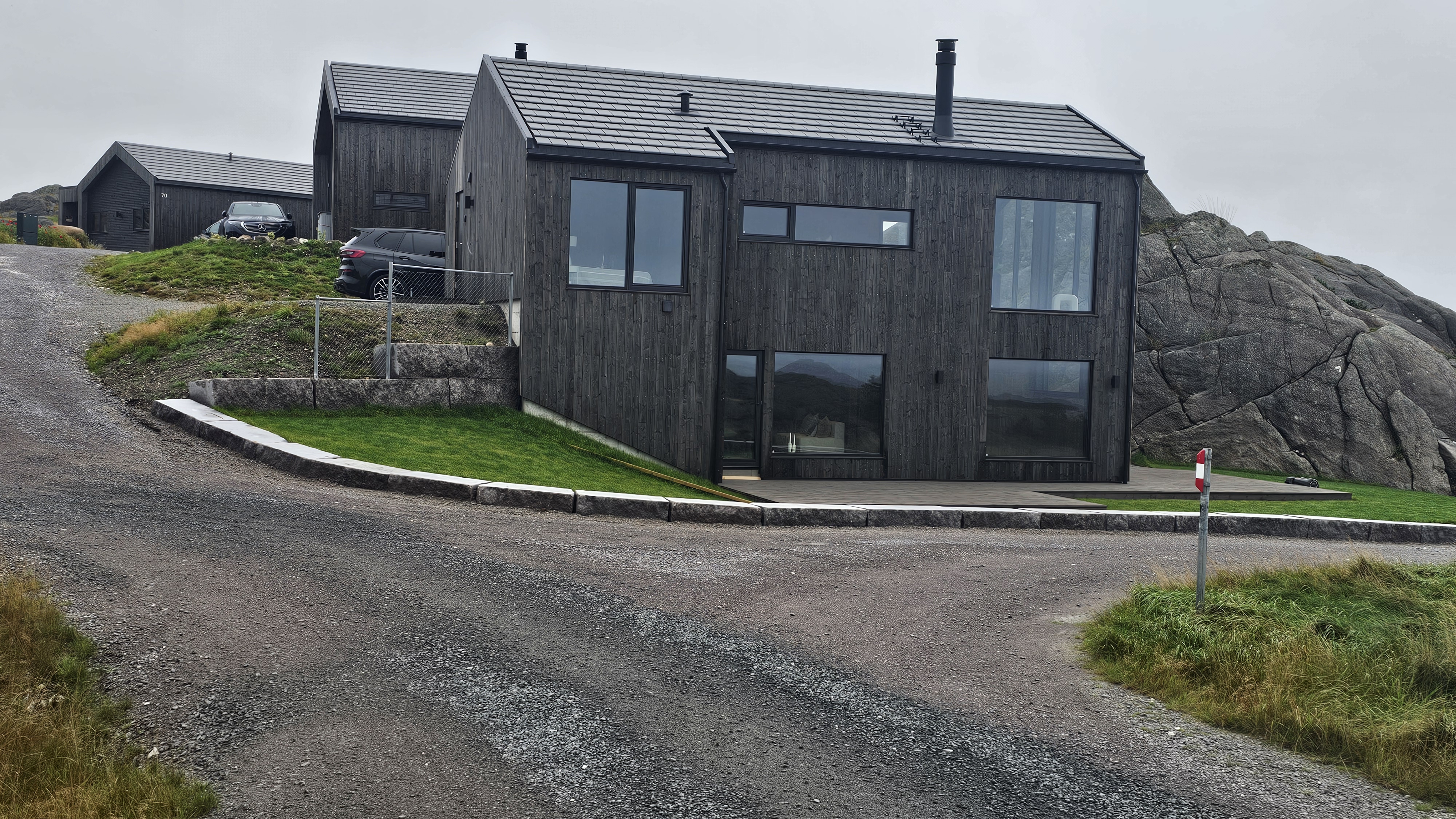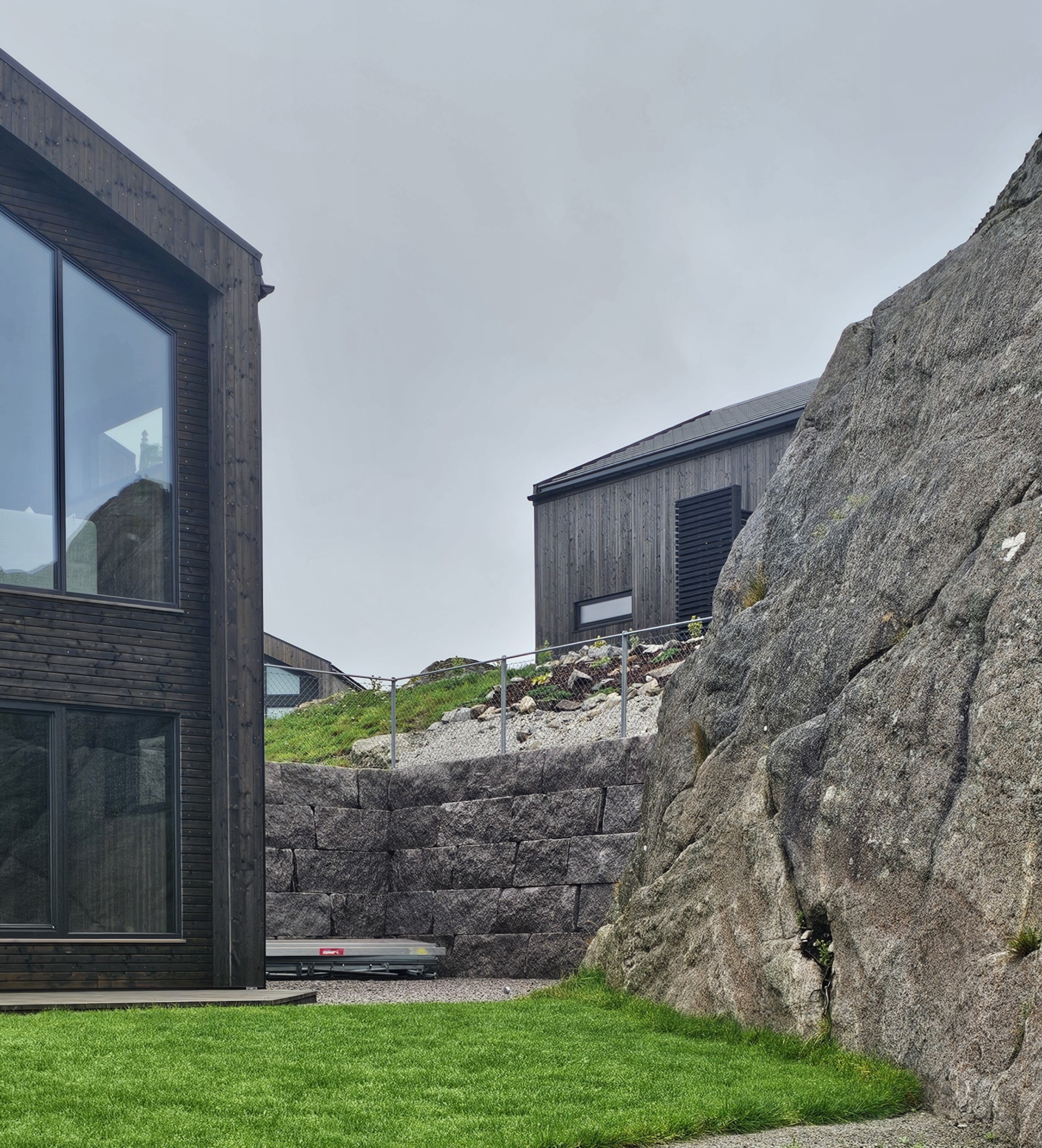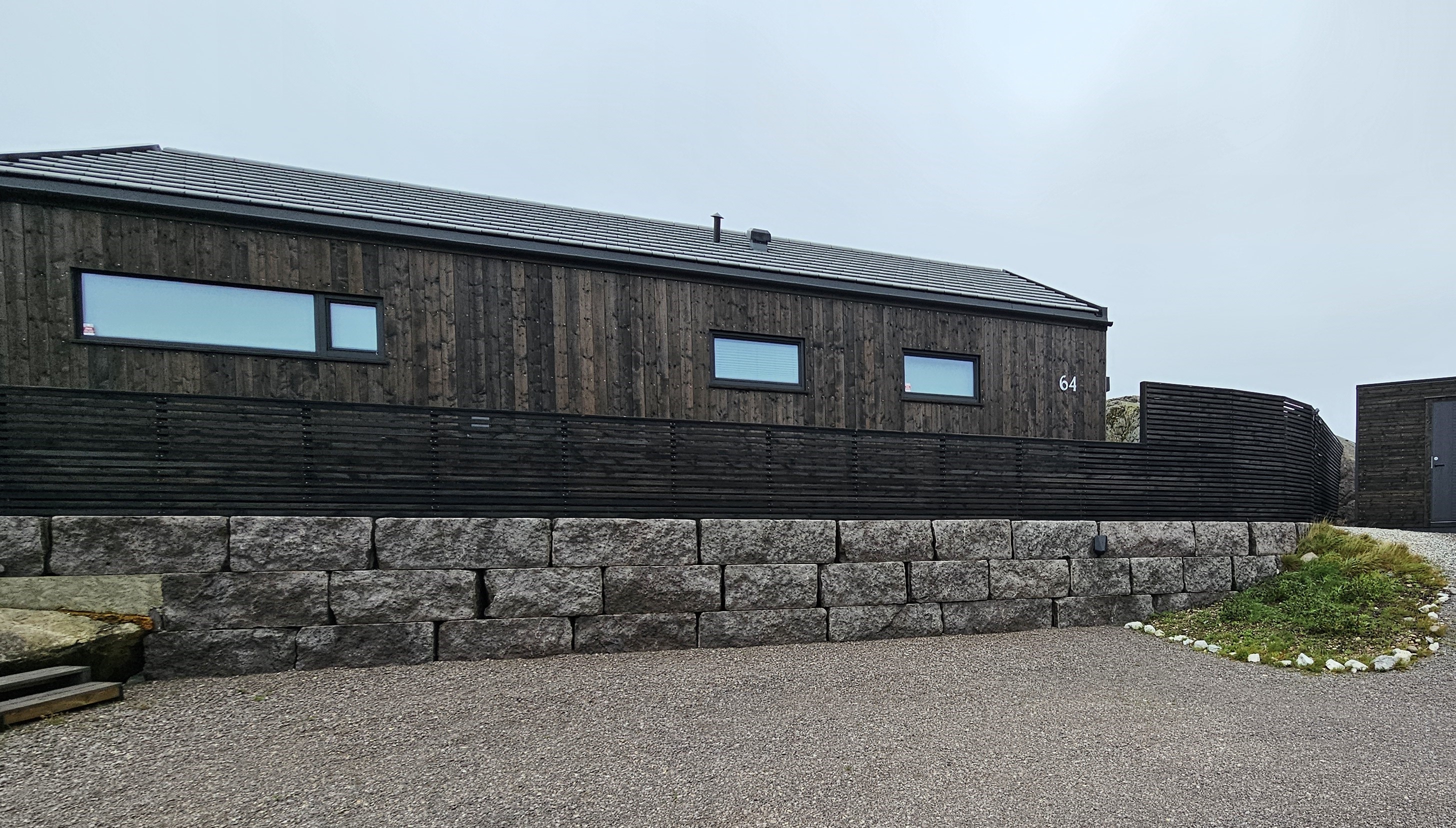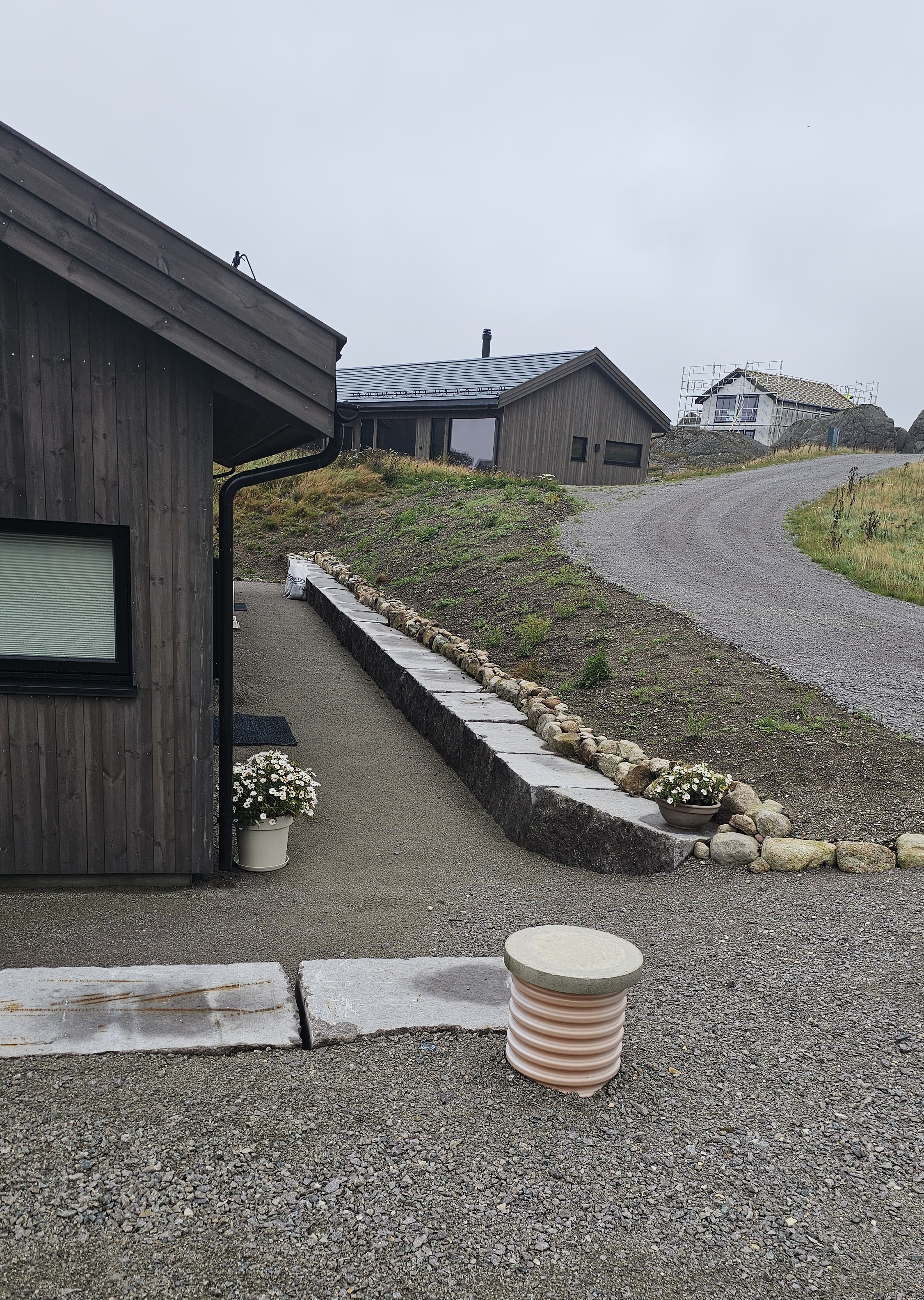 Murestein fra Sirevåg levert til T. Helland Maskin AS. Murer til hytter og lekeplass