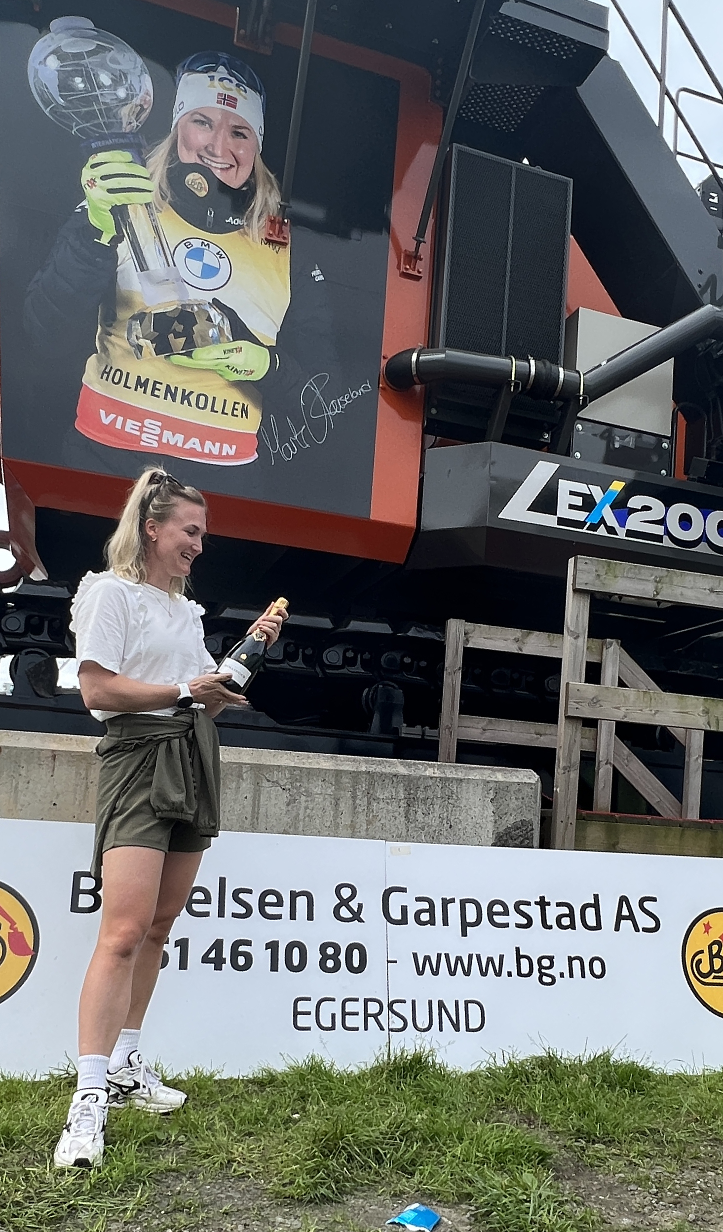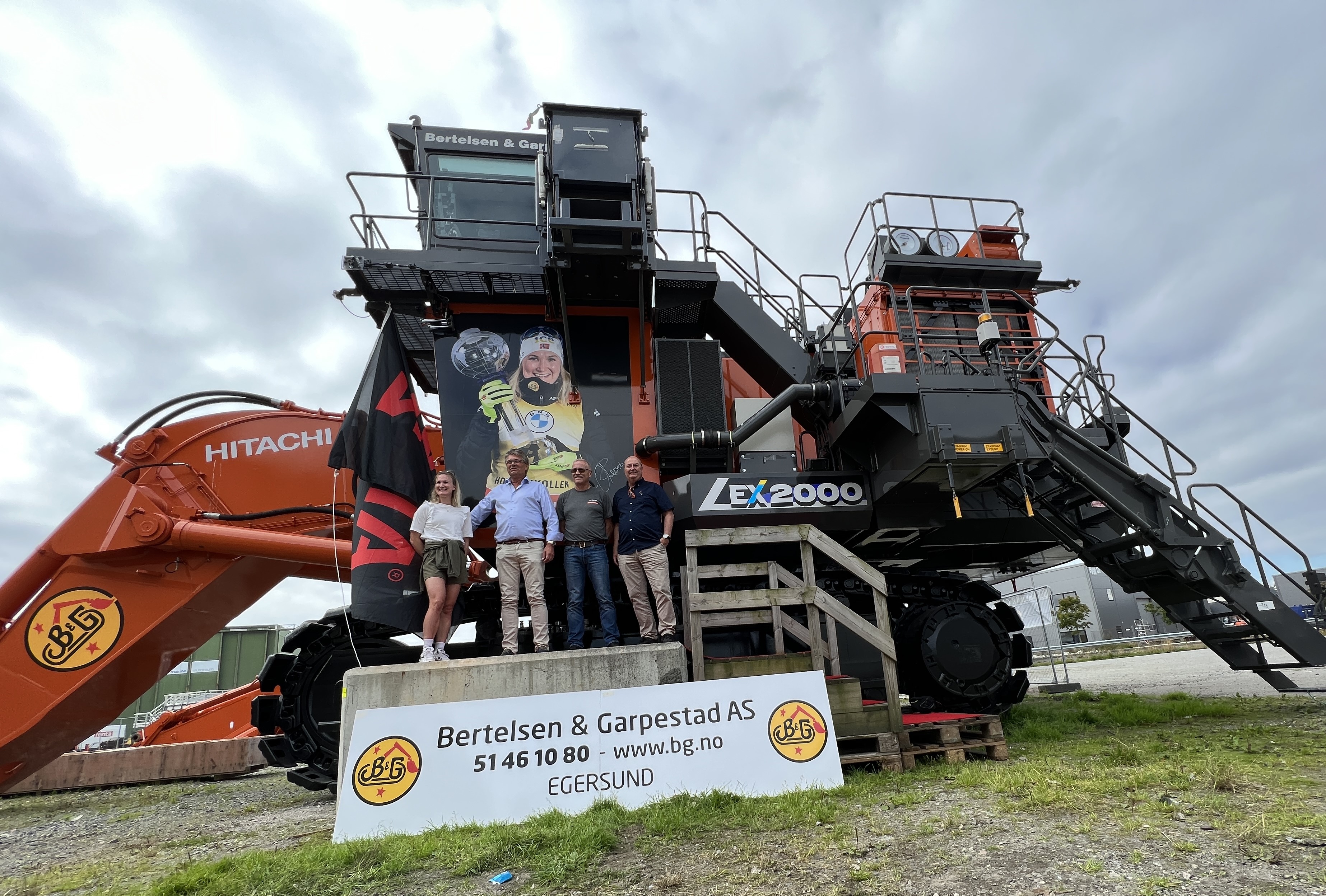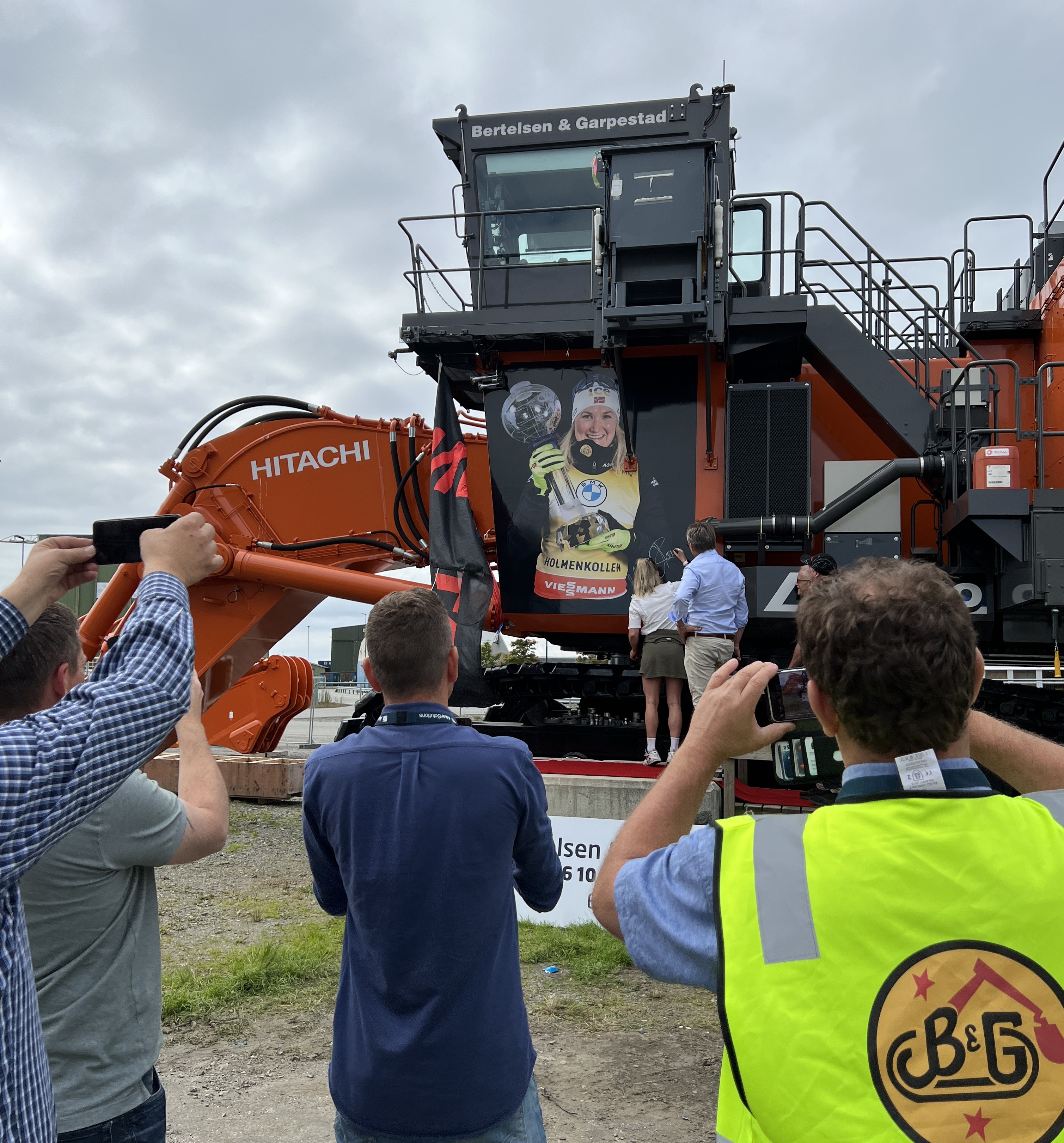 Rett før helgen, og rett før den travle konkurransesesongen, tok Marte turen til Stord for en maskindåp i stor skala. Idrettsstjernen lot seg virkelig imponere av anleggsmaskinen: «Dette er utrolig stort – bokstavelig talt», ler hun når hun får sett maskinen. «Når Øyvind fortalte om dette – så var det jo bare veldig gøy. En ære rett og slett. Og så stor maskin da gitt», smiler gulljenta etter å ha avduket og signert et megabilde av seg selv på maskinenes venstre side. Marte tok også de 22 trappene opp til det romslige førerhuset for å kjenne på spakene. Og det levnes null tvil om at dette sponsor-samarbeidet betyr mye for begge parter: «Jeg er veldig heldig som får oppleve mye mer enn skiskyting. Så er det veldig hyggelig å ha en sponsor som er så engasjert. Det er jo det som er gøy med BG – at de er med og heier, og er involvert. Det er kjempeartig. Så jeg må tilbake når maskinen er i drift – men da tør jeg nok bare å sitte i barnesetet», ler hun..