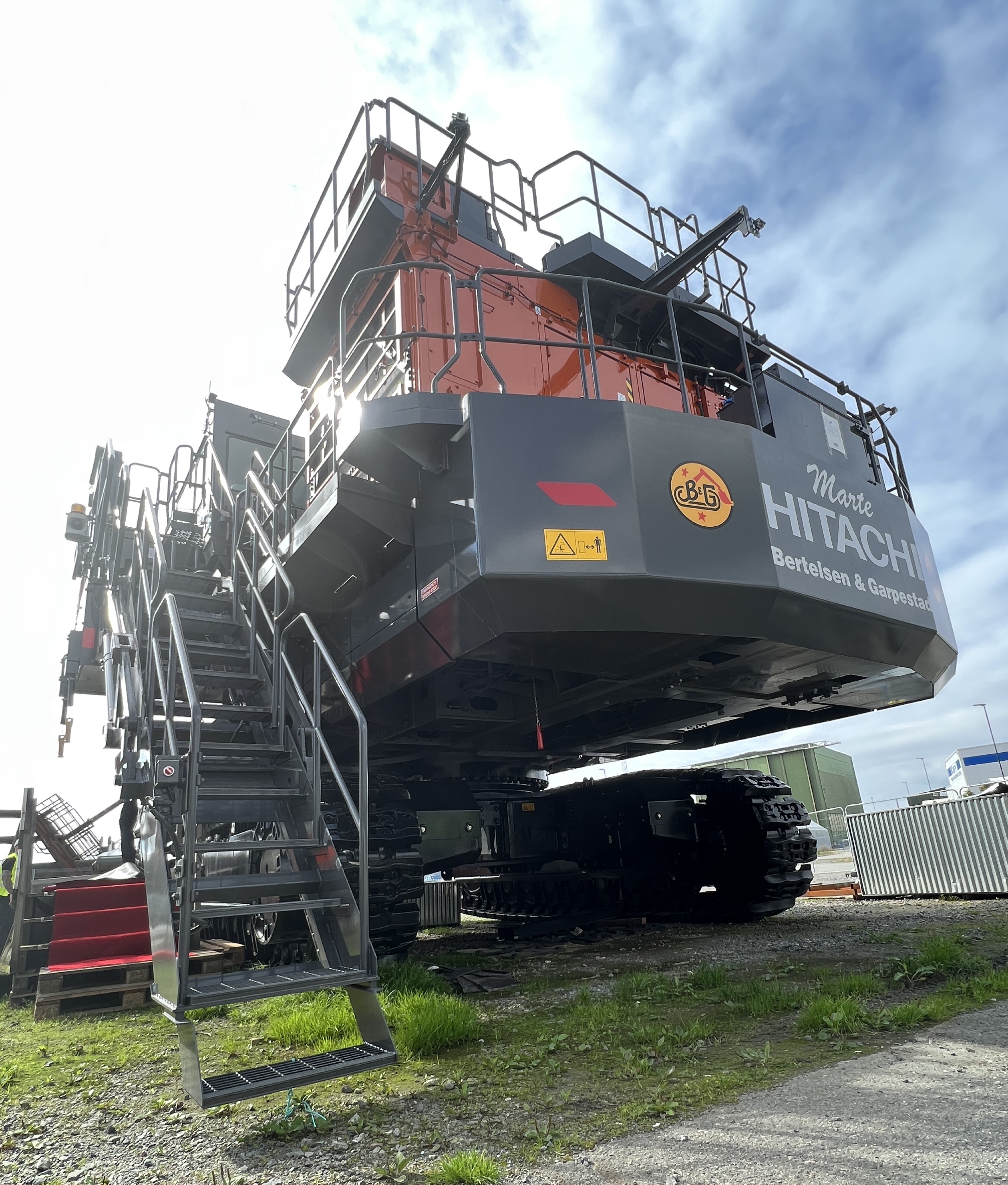 «Marte» ble altså navnet på den 200 tonns tunge Hitachi EX2000 som ble overlevert på Stord. Maskinen skal påmonteres en La Bounty 9500R saks som skal klippe opp utdaterte oljeplattformer etter oppdrag fra Aker Solutions Stord. Maskinen ble levert til kai i deler før sommeren, og er nå montert sammen av Nasta Spesialproduksjon. «Før maskinen kan tas i bruk til formålet må bommen fraktes til Larvik der den forlenges ved Nasta sin avdeling for spesialproduksjon. Deretter skal den 24 tonn tunge saksa, som er ferdig produsert i midten av september, monteres direkte på bommen. En forventer at maskinen vil være i drift på senhøsten», bekrefter maskinselger hos Nasta, Bjarne Bøe, som også hadde tatt turen for å bevitne maskindåpen. «Vi har hatt et meget godt samarbeid med Bertelsen & Garpestad AS nå i mange år, men en slik maskinoverlevering er ikke helt hverdagskost for oss i Nasta», smiler maskinselgeren. Denne dagen tar også Tom Johansen, administrerende direktør i Nasta, del i feiringen på Stord, og Tom kan også bekrefte at det er en spesiell maskin. «Dette er en av de største maskinene Nasta har levert. Dessuten er det den første modellen i den nye serie 7 av denne størrelsen som Hitachi har eksportert til Europa. Vi er selvsagt spent på hvordan maskinen vil oppfattes sammenlignet med andre maskiner som utfører tilsvarende jobber på Aker Stord i dag. Tidligere modeller av Hitachi EX2000 har fantastisk historikk og rykte, så nyvinningene fra serie-7, kombinert med kundetilpasningen fra vår dyktige spesialproduksjonsavdeling, bør være en god kvalitetssikring», fastslår Johansen.