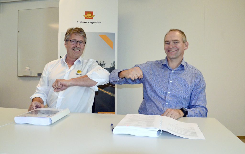 28.09.20 signerte daglig leder Øyvind Langemyr kontrakten for B&G med Statens Vegvesen for bygging av ny E39 Leirvika – Rendalen.